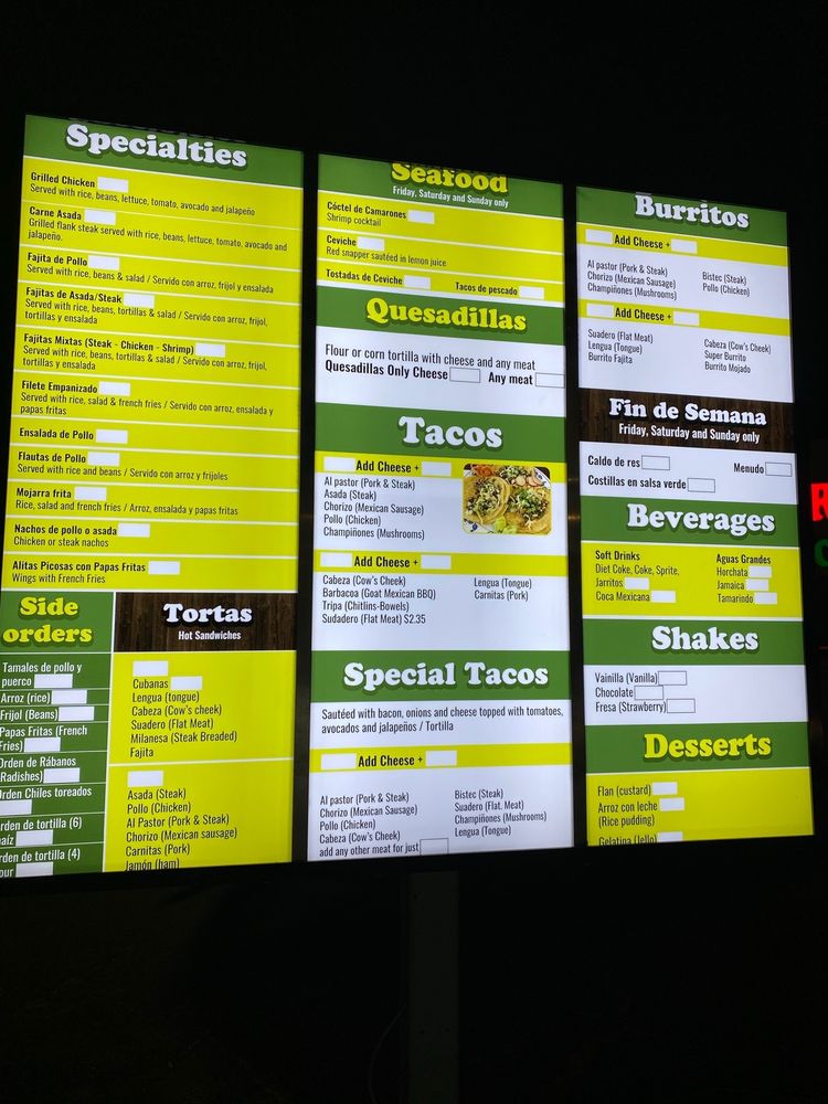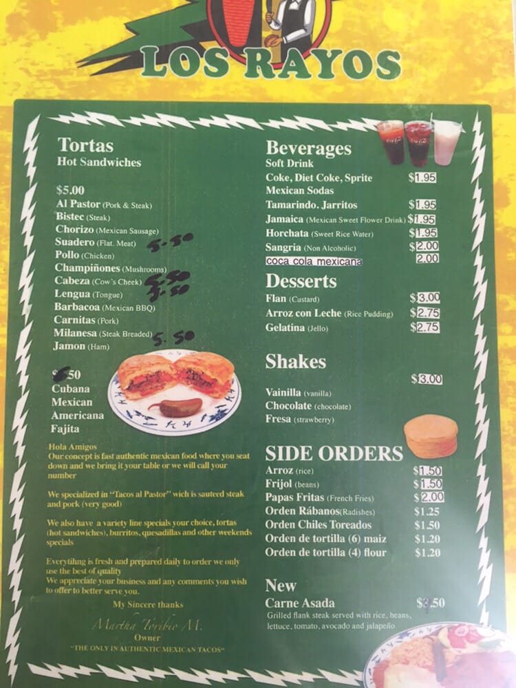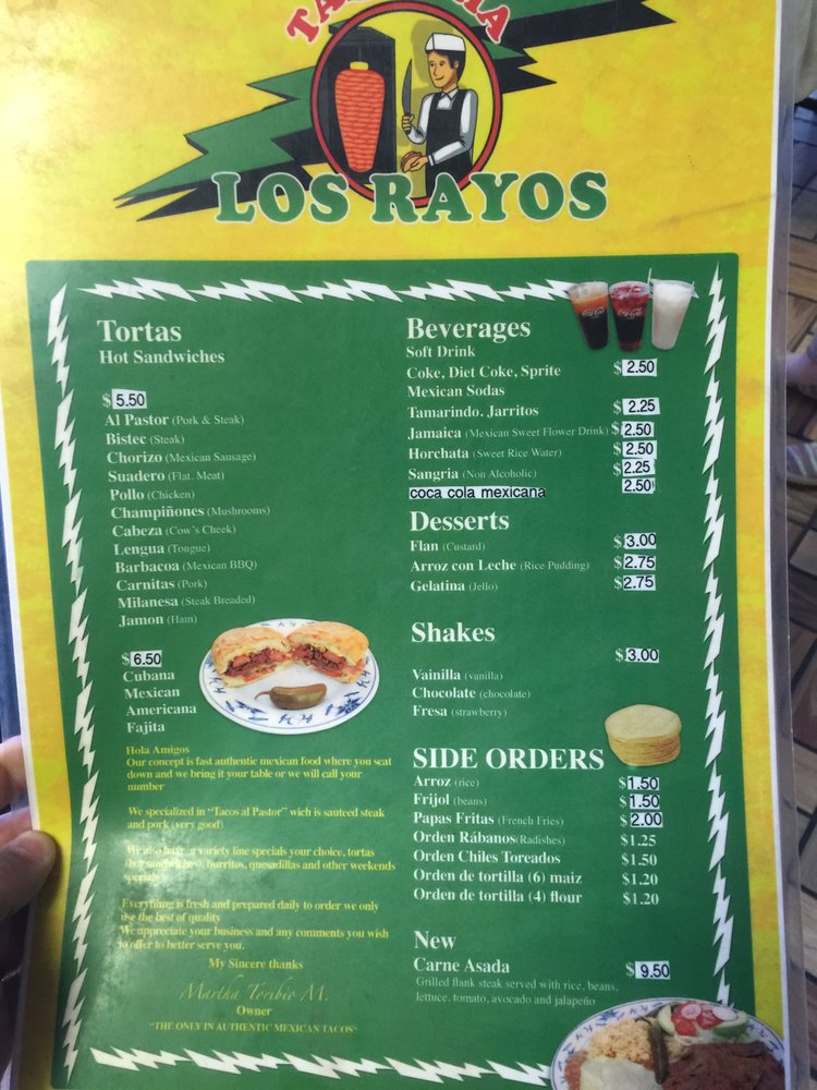 Taqueria Los Rayos Menu